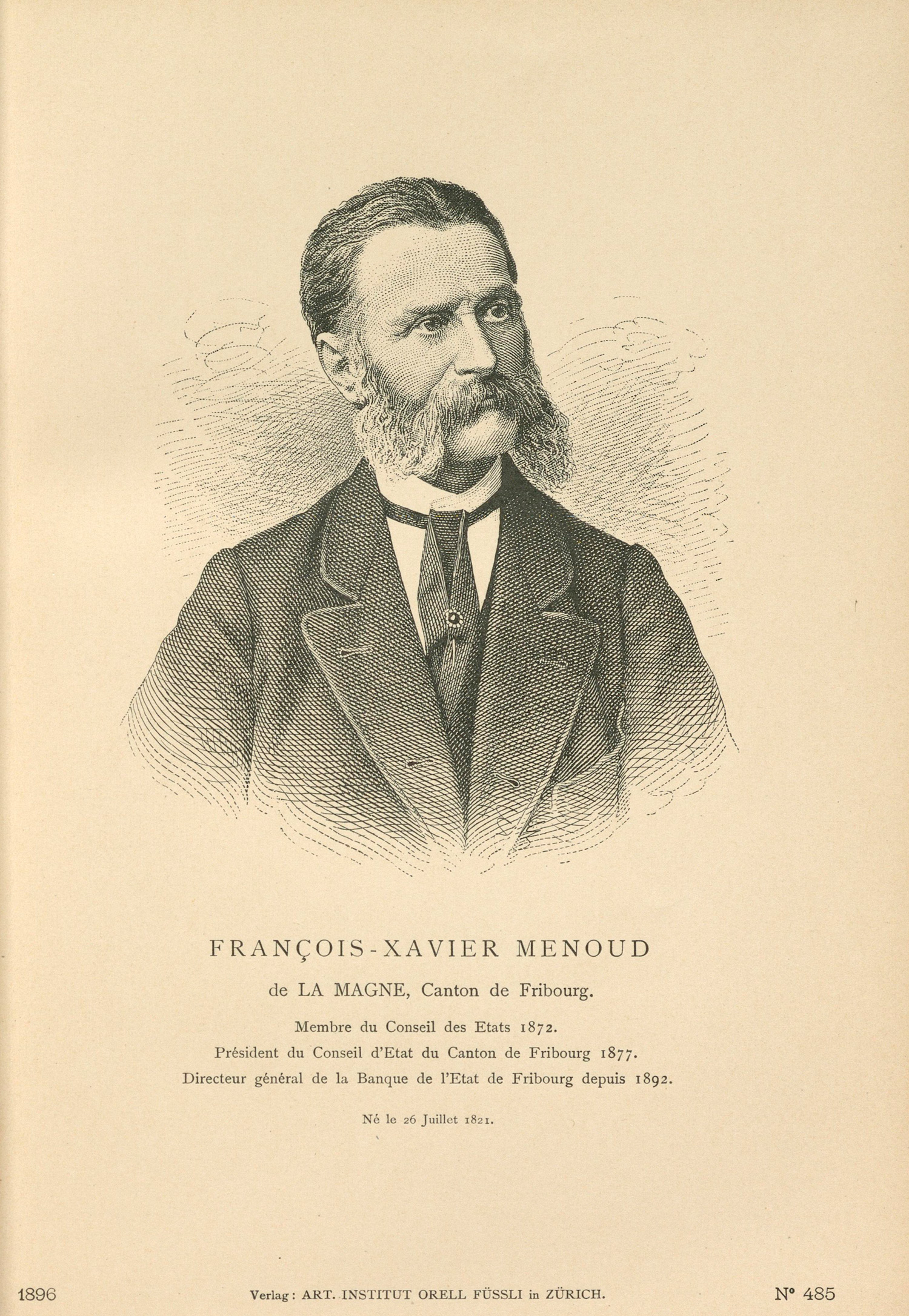 "Menoud, François-Xavier (1821 - 1904)", Base de données "élites suisses", Obélis, Université de Lausanne, https://elitessuisses.unil.ch/p/93287?v=2026-01-28. (version du 28.01.2026, consulté le 17.04.2026).